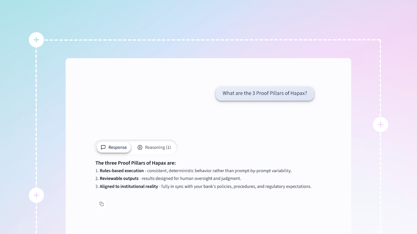 Public AI can be inconsistent. Hapax is designed for rules-based execution and reviewable outputs in regulated environments.