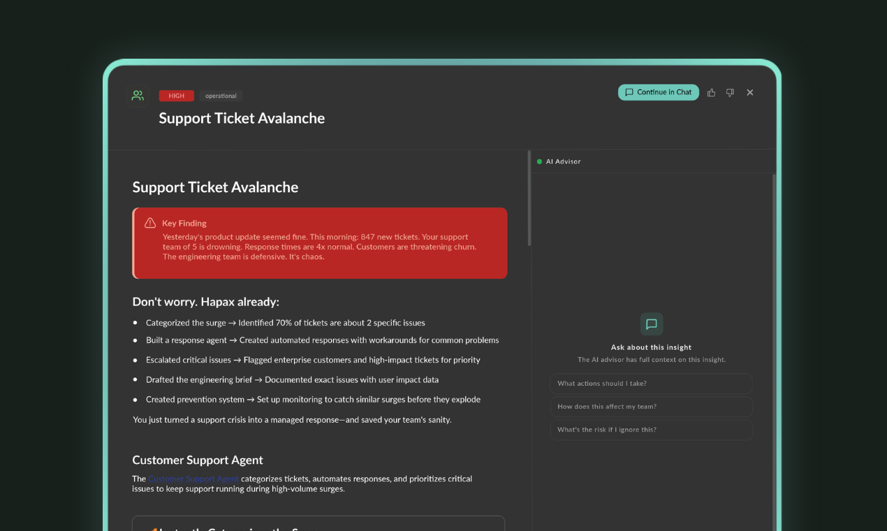 Hapax builds custom solutions by observing how your specific team works. These examples are just the starting point. Sign up and the Proactive Advisor will identify what to automate for your unique workflows.